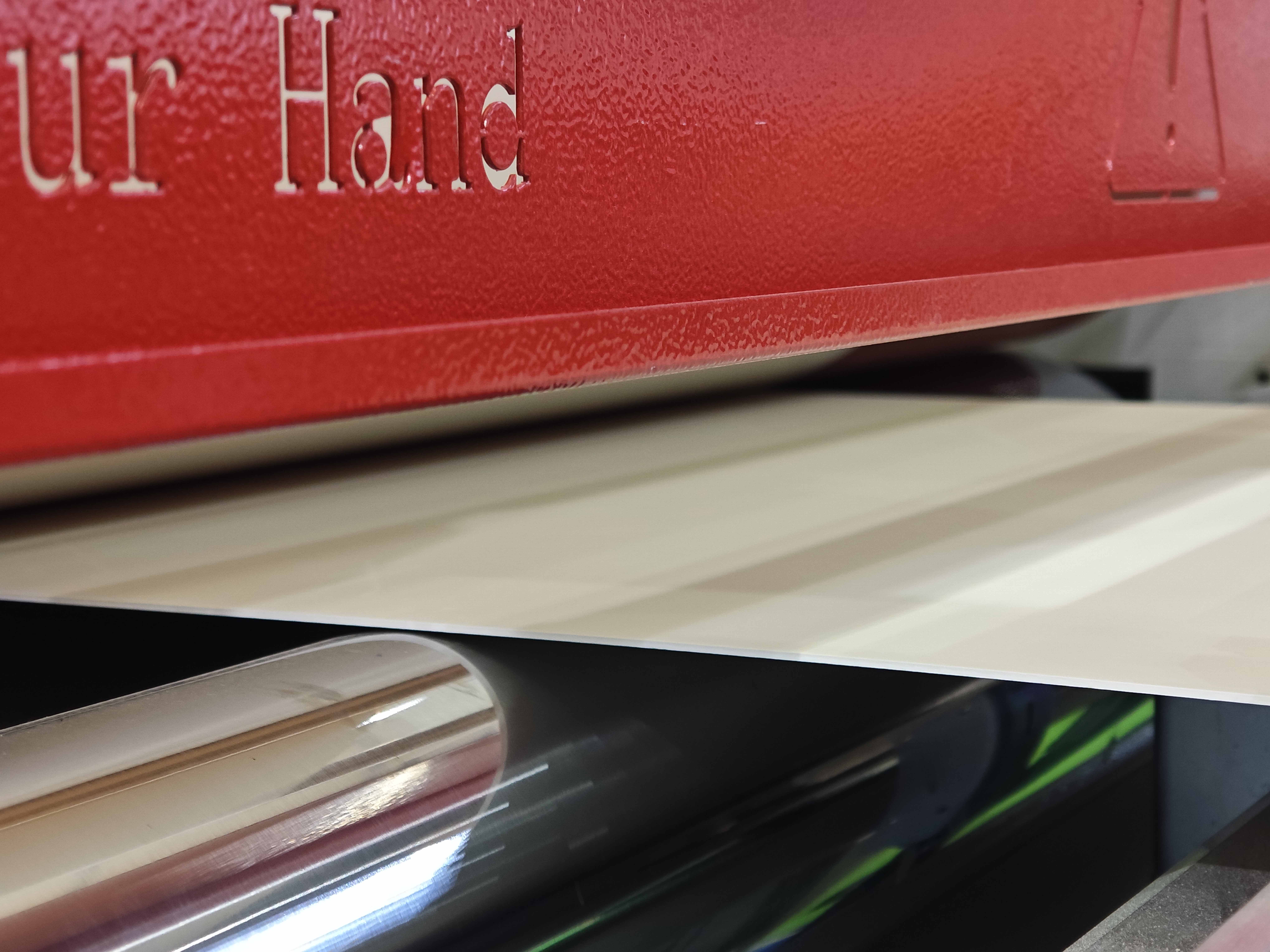 【涂飾仿真同步壓紋生產(chǎn)線】: SPC地板、PET地板可以采用設(shè)備實(shí)現(xiàn)精準(zhǔn)定位,較傳統(tǒng)工藝提升5倍,圖案和紋理的天然仿真還原度達(dá)90%以上,以極低的成本,復(fù)刻實(shí)木地板的質(zhì)感與紋理,產(chǎn)品品質(zhì)不變,減少設(shè)備的投入,快速占領(lǐng)市場。
