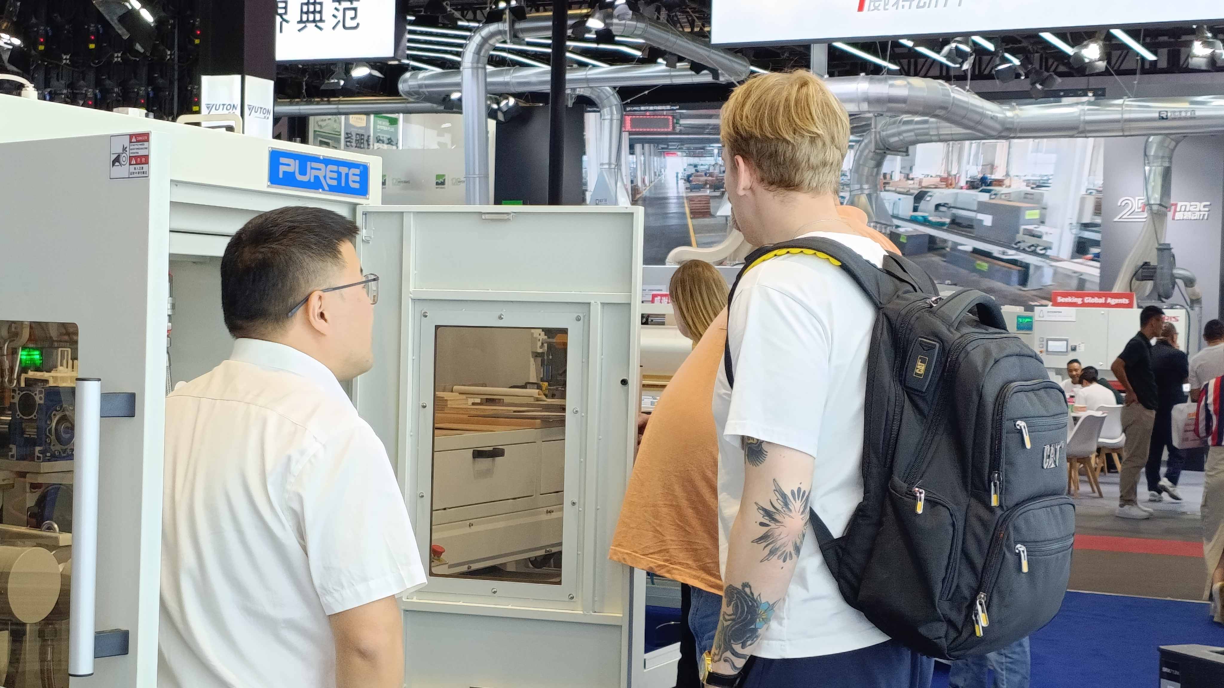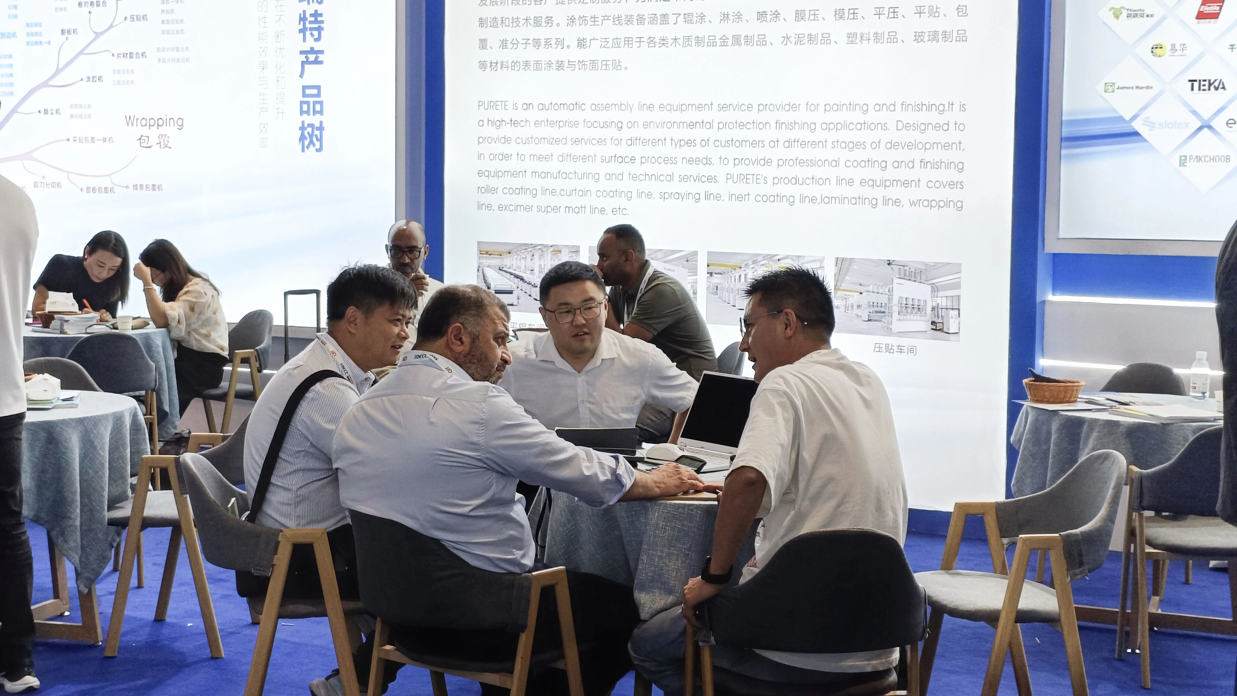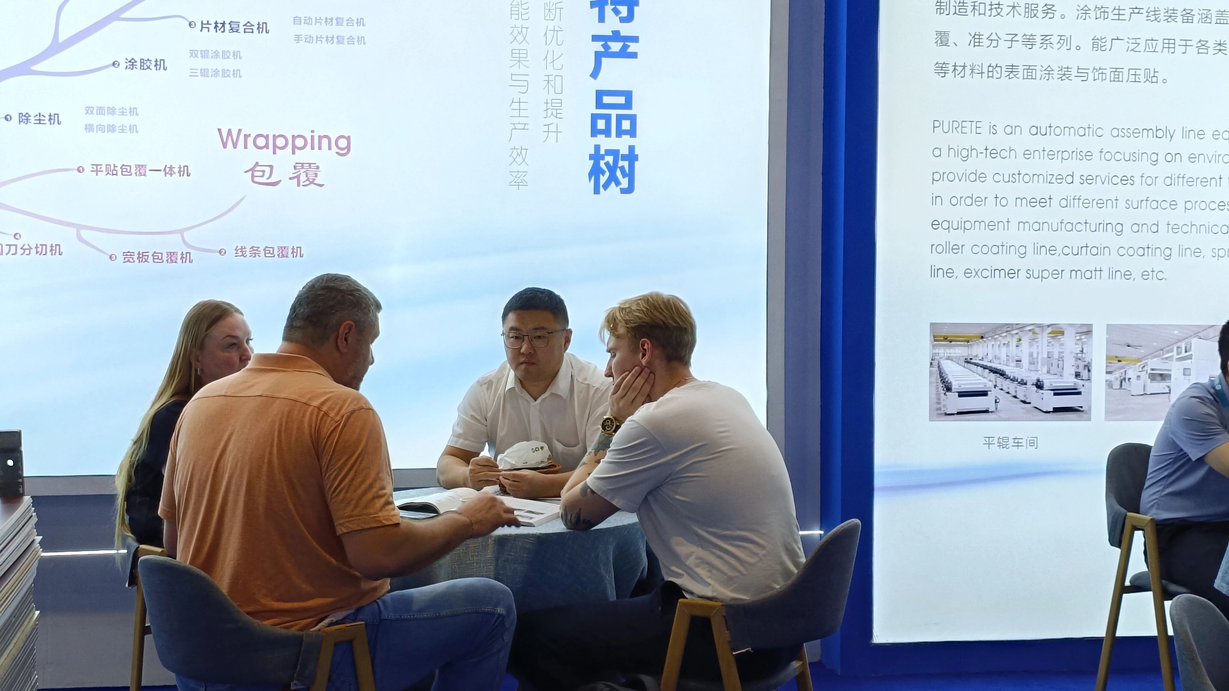 在本次展會(huì)上,瀚秋股份的往復(fù)噴漆機(jī)與 PUR 平貼線作為 “涂飾一體化解決方案” 的核心設(shè)備,贏得了客戶的廣泛好評(píng)。